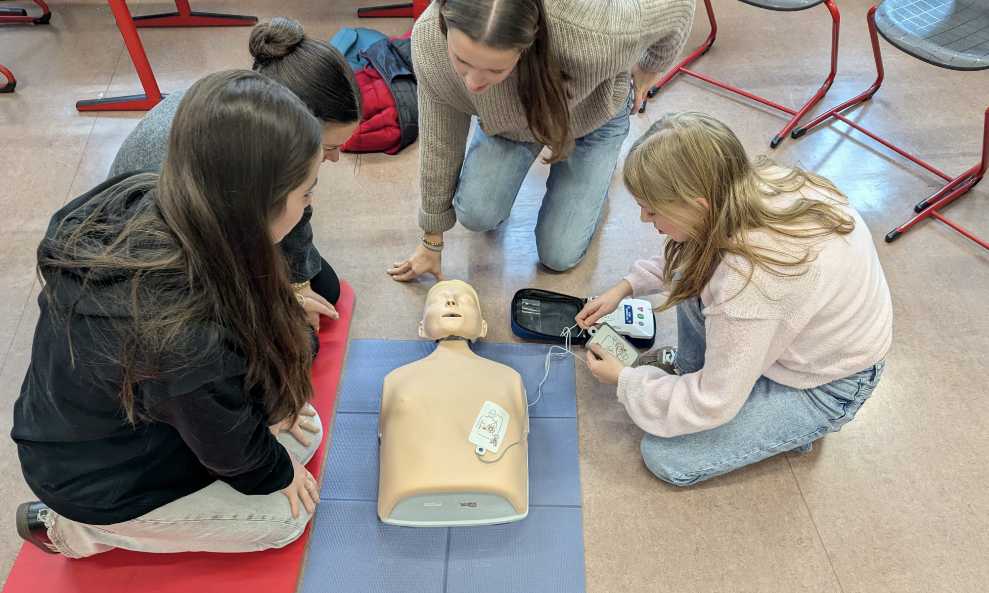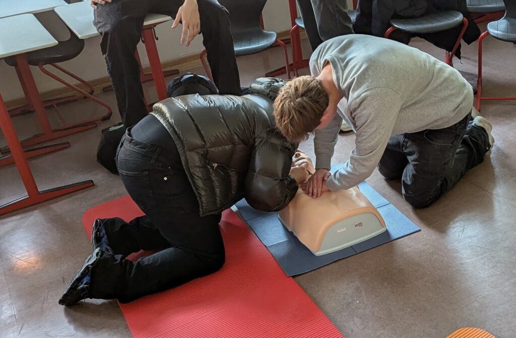 Der Fokus des Projekts liegt dabei auf der Durchführung der Herzdruckmassage. Diese wurde in Kombination mit Beatmung und Benutzung eines automatischen externen Defibrillators (AED) gezeigt und eingeübt. Mit großer Motivation und Ernsthaftigkeit haben unsere Schülerinnen und Schüler während des Projekts mitgearbeitet, sodass sie für den eventuellen Ernstfall wichtige Kompetenzen erlangt haben.