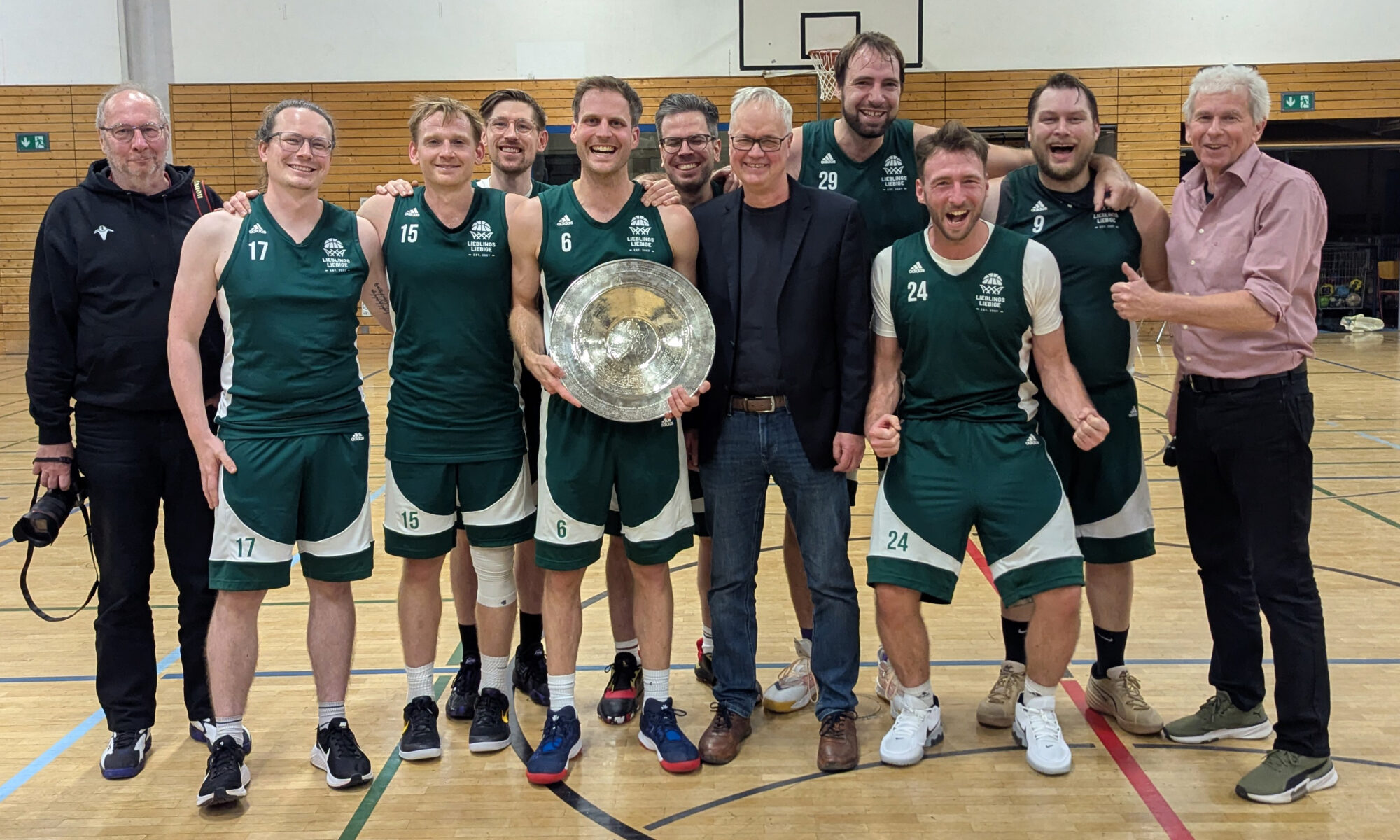 Das Finale, ausgetragen vor einer rekordverdächtigen stattlichen Zuschauerkulisse und von dem Stamm-SR-Duo Heiner Desch/Jochen Eichhorn souverän geleitet, begann mit einem minutenlangen Paukenschlag: Beim Titelverteidiger und Favoriten schien der Korb wie vernagelt zu sein und es dauerte bis zur siebten Spielminute, ehe der erste „HASSler“-Korb fiel. 0:13 – ein Alptraum-Start! „Lieblings-Liebige“ konnten von diesem Vorsprung erst einmal bis zur Halbzeit (18:9) zehren. Es dauerte dann aber nicht sehr lange, bis die Fans mit einem Kampf auf Biegen und Brechen belohnt wurden. 20:15, 25:23 – die Partie stand auf des Messers Schneide. Kevin Eichelsdörfer (10 Punkte), Thomas Zenkel (8) und Tim Seidelmann (6) zeigten ihre Klasse, hatten in ein paar Situationen aber nicht das notwendige Quäntchen Glück im Abschluss. Routiniers wie der ehemalige Bundesliga-Center Erik Land und seine Teamkameraden Christoph Höning, Dirk Dippold und Uli Hirmke blieben „cool“, hielten mit hoher Intensität dagegen und sicherten sich den verdienten Sieg (34:27).